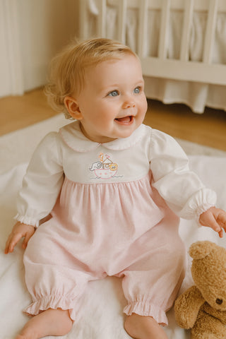 Petit Ami Girls Pink & White Gingham Noah's Ark Longall Romper 3 6 9 12 18 24 Months